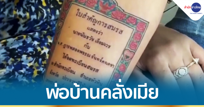 คู่รักชาวหัวหินสร้างความฮือฮา ฝ่ายชายเเสดงความคลั่งรักภรรยาด้วยการสักทะเบียนสมรสบนแขนข้างขวา เสมือนภรรยาอยู่ข้างกายตลอดเวลา รับตำแหน่งสามีแห่งชาติไปเต็มๆ