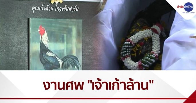 ฮือฮา งานศพ “เจ้าเก้าล้าน” ไก่ชนทำเงิน มีผู้คนและ FC มาร่วมอาลัยจำนวนมาก มีทั้งการจัดเลี้ยงอาหาร ทำพิธีสวดศพ ครบถ้วนตามประเพณี