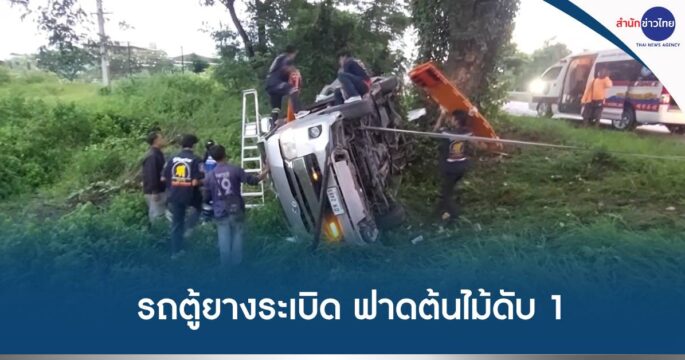 รถตู้ยางระเบิด เสียหลักฟาดต้นไม้ ดับ 1 ราย