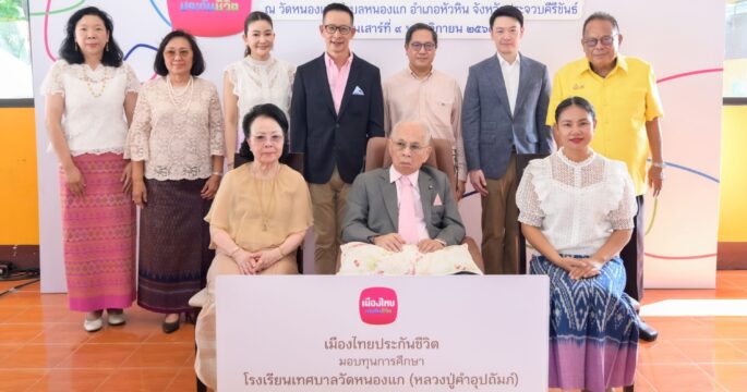 เมืองไทยประกันชีวิต ร่วมสืบสานวัฒนธรรมและพุทธศาสนา ถวายผ้ากฐิน ประจำปี 2567 วัดหนองแก อ.หัวหิน จ.ประจวบคีรีขันธ์ โดยปัจจัยที่ได้จากการถวายผ้ากฐินจะนำไปใช้ในการบูรณะศาสนสถานและพัฒนาพื้นที่ภายในวัด พร้อมมอบทุนการศึกษาแก่นักเรียนโรงเรียนวัดหนองแกด้วย