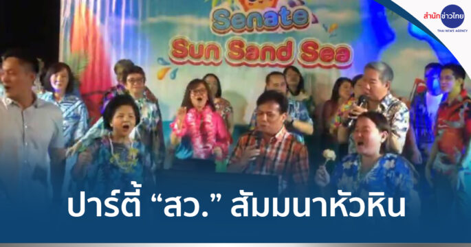 เปิดภาพ “วุฒิสภา” สัมมนาหัวหิน ก่อนแถลงโต้ฮั้วเลือก สว.ปี 67 บรรยากาศชื่นมื่น! สวมชุดฮาวาย วอร์มลูกคอร้องเพลงฉ่ำ กิจกรรมไฮไลต์ แลกของขวัญบัดดี้