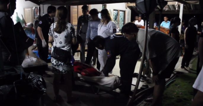 คุณป้าวัย 60 ปี ปั่นจักรยานออกกำลังกาย และจอดรถรับโทรศัพท์กลับเจอศพนอนจมกองเลือดเสียชีวิตข้างทางเบื้องต้นพบเป็นแรงงานต่างด้าวถูกกฎหมาย สันนิษฐานอาจถูกลูกหลงวัยรุ่นทะเลาะวิวาท