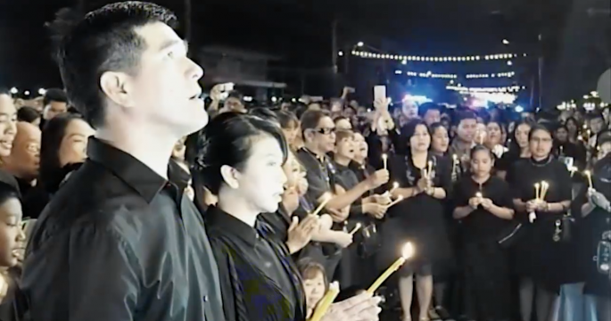 พสกนิกรทุกหมู่เหล่า และนักท่องเที่ยวจำนวนมาก รวมตัวกันจุดเทียนถวายความอาลัยหน้าวังไกลกังวล อ.หัวหิน จ.ประจวบคีรีขันธ์