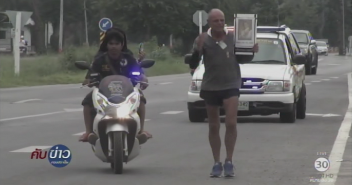 ชายชาวออสเตรเลียวัย 46 เดินเท้าจาก อ.เกาะสมุย จ.สุราษฎร์ธานี มุ่งหน้าพระบรมมหาราชวัง เพื่อเข้าถวายสักการะพระบรมศพ ล่าสุดถึง อ.หัวหิน แล้ว