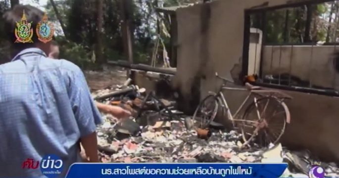 เด็กนักเรียนเรียนดีโพสต์ขอความช่วยเหลือผ่านโลกโซเชียล หลังบ้านถูกไฟไหม้วอดทั้งหลัง ลำบากทั้งครอบครัว