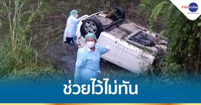 สลด! พบศพหญิงสาวจมน้ำอยู่ในรถเก๋งตกร่องข้างทางลึก 20 เมตร ที่เกิดเหตุบนถนนไม่พบร่องรอยการเบรก หญ้าข้างทางเป็นร่องรอยรถยนต์ตกลงไปชนกันต้นไม้ในร่อง ทำให้รถยนต์ตกลงไปในร่องน้ำพลิกคว่ำ