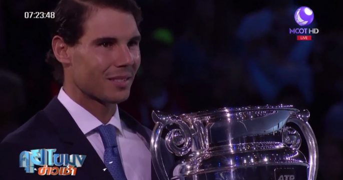 ราฟาเอล นาดาล จากสเปน รับถ้วยรางวัลนักเทนนิสอันดับ 1 ของโลกประจำปี 2017 ขณะที่โรเจอร์ เฟเดอเรอร์ จากสวิสเก็บชัยชนะนัดแรกในเทนนิสเอทีพีไฟนอลส์ ที่อังกฤษ