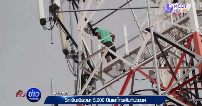 หนุ่มใหญ่วัย 42 ปี ปีนเสาโทรศัพท์สูง 20 เมตร ประชดชีวิตต้องตกงาน เงินเยียวยา 5,000 บาทจากรัฐบาลก็ไม่ได้รับ