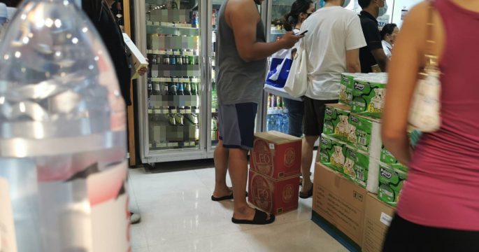 ประชาชนตื่นตัว รับทราบนโยบาย กทม.ห้ามขายแอลกอฮอล์ 11 วัน นับจากพรุ่งนี้ ต่อคิวซื้อเครื่องดื่มแอลกอฮอล์จำนวนมาก