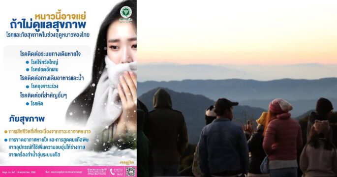 กรมควบคุมโรค ออกประกาศเตือนประชาชนให้ดูแลร่างกายให้อบอุ่น รักษาสุขภาพให้แข็งแรง เพื่อป้องกันการป่วยในช่วงฤดูหนาวปีนี้ เน้นดูแลสุขภาพและป้องกันตนเองจาก 4 โรคติดต่อที่พบบ่อย และ 2 ภัยสุขภาพที่สำคัญ เพื่อลดโอกาสเจ็บป่วยและเสียชีวิต