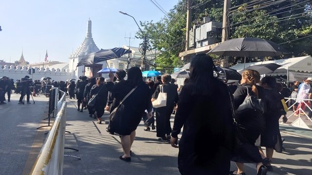 แม้จะเป็นเวลาเกือบ 4 เดือนแล้ว ที่สำนักพระราชวัง เปิดให้ประชาชนเข้ากราบถวายบังคมพระบรมศพ แต่ยังคงมีประชาชนจากทั่วสารทิศเดินทางมาอย่างต่อเนื่อง