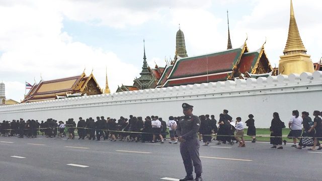 ประชาชนทั่วสารทิศทยอยเดินทางเข้ากราบถวายบังคมพระบรมศพพระบาทสมเด็จพระปรมินทรมหาภูมิพลอดุลยเดช บนพระที่นั่งดุสิตมหาปราสาทในพระบรมมหาราชวังอย่างต่อเนื่อง