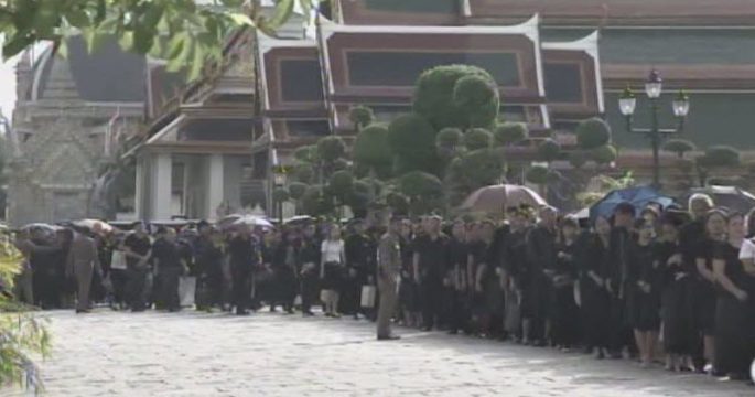ประชาชนทั่วสารทิศหลั่งไหลร่วมกราบถวายสักการะพระบรมศพ ขณะที่นักท่องเที่ยวเที่ยวยังคงเข้าเที่ยวชมวัดพระแก้ว โดยแต่งกายสุภาพ และอยู่ในอาการสำรวม