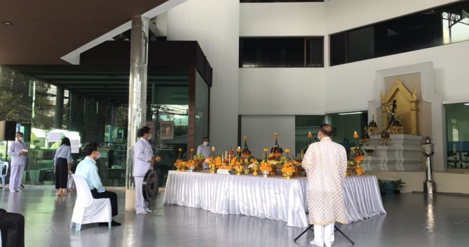 พรรคประชาธิปัตย์ จัดงานทำบุญครบรอบก่อตั้งพรรคปีที่ 74 สมาชิกไม่มาร่วมงาน ป้องกันการแพร่เชื้อโควิด-19