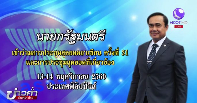 นายกรัฐมนตรี เดินทางถึงสาธารณรัฐฟิลิปปินส์ ร่วมประชุมสุดยอดอาเซียน ครั้งที่ 31 และการประชุมที่เกี่ยวข้อง ในช่วงค่ำ จะร่วมงานเลี้ยงอาหารค่ำ ในโอกาสการฉลองครบรอบ 50 ปีการก่อตั้งอาเซียน