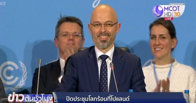 ปิดการประชุมแก้ปัญหาโลกร้อน 200 ชาติทั่วโลกที่เข้าร่วมประชุม บรรลุผลในข้อตกลงที่จะทำให้สนธิสัญญาสภาพอากาศโลกที่กระทำกันที่กรุงปารีสในปี 2558 มีผลบังคับใช้อย่างจริงจัง