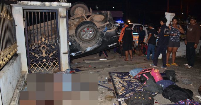 เกิดอุบัติเหตุรถกระบะพุ่งชนประตูรั้วบ้านริมถนนเมืองชุมพรอย่างแรงช่วงเช้ามืด อัดร่างคนขับเสียชีวิตทันที รวมคนอื่นอีก 3 ศพ และบาดเจ็บกว่า 10 ราย