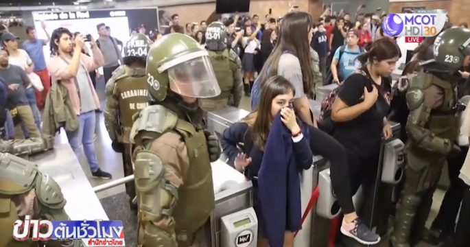 นักเรียนมัธยมในชิลีชุมนุมประท้วงต่อต้านการขึ้นค่าโดยสารรถไฟใต้ดิน ตามสถานีรถไฟใต้ดินหลายแห่งย่านใจกลางกรุงซานติอาโก้