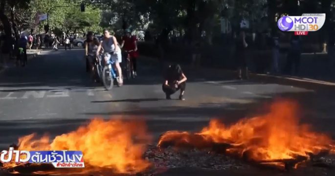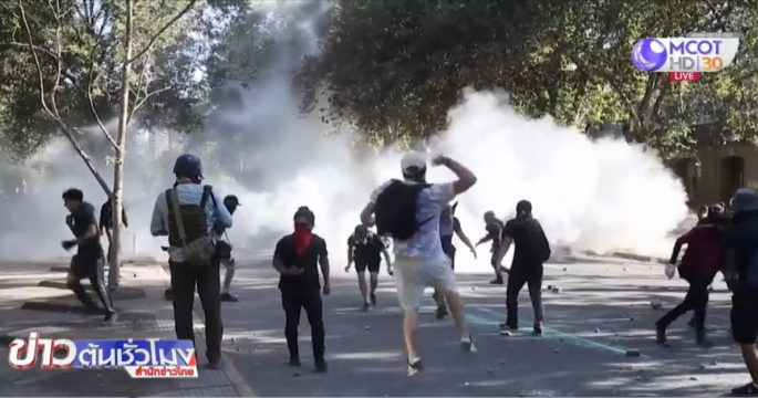การชุมนุมประท้วงในชิลียังไม่มีทีท่าว่าจะยุติ ที่กรุงซานเตียโก เกิดการปะทะกันระหว่างกลุ่มผู้ชุมนุมประท้วงหลายร้อยคนกับตำรวจปราบจลาจล