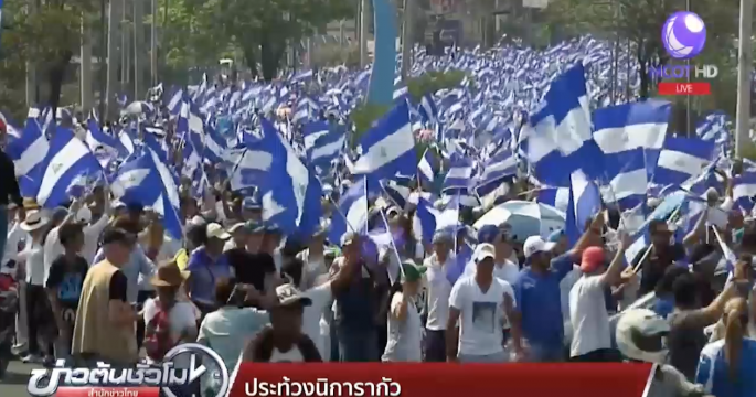 นิการากัว 10 พ.ค.-ที่กรุงมานากัว เมืองหลวงของนิการากัว กลุ่มผู้ประท้วงหลายพันคนรวมตัวชุมนุมประท้วงประธานาธิบดีดาเนียล ออร์เตกา ผู้นำนิการากัว กลุ่มผู้ประท้วงแสดงความไม่พอใจตำรวจที่ใช้กำลังรุนแรงปราบปรามการชุมนุมประท้วงรัฐบาล เมื่อเดือนเมษายนที่ผ่านมา ยังส่งผลให้นักเรียนนักศึกษาซึ่งเป็นแกนนำการประท้วงเสียชีวิตหลายสิบคน องค์กรสิทธิมนุษยชนภาคเอกชนแห่งหนึ่งระบุว่ามีผู้เสียชีวิตจากการชุมนุมประท้วงครั้งนี้ถึง 63 คน ขณะที่ยอดผู้เสียชีวิตจากทางการระบุจำนวนน้อยกว่านี้มาก.-สำนักข่าวไทย