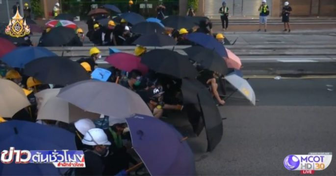 รัฐบาลฮ่องกงประณามการใช้ความรุนแรงของผู้ประท้วง พร้อมวิงวอนให้ประชาชนต่อต้านการใช้ความรุนแรง หลังการใช้กระสุนจริงและน้ำแรงดันสูงฉีดสลายกลุ่มผู้ชุมนุมเป็นครั้งแรกเมื่อวานนี้