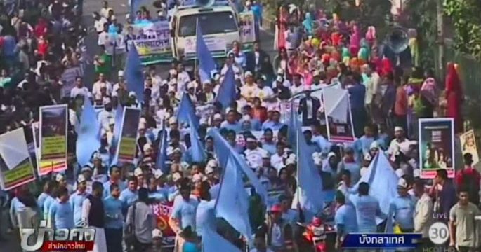 ชาวบังกลาเทศหลายร้อยคน ร่วมชุมนุมในกรุงธากาเพื่อประท้วงรัฐบาลเมียนมาร์ ที่ปล่อยให้เกิดการเข่นฆ่าชาวมุสลิมโรฮิงยา พร้อมเรียกร้องให้คณะกรรมการรางวัลโนเบล