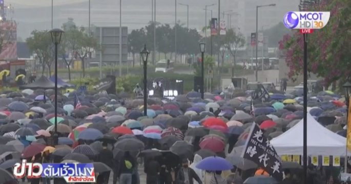 ชาวฮ่องกงกว่า 1,000 คน ประท้วงท่ามกลางสายฝน เรียกร้องประชาธิปไตยในย่านการเงินสำคัญ
