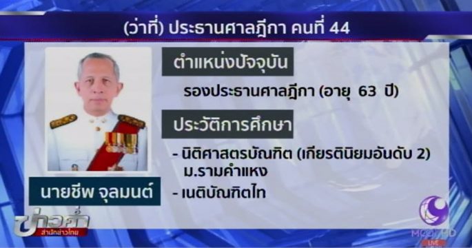 ก.ต.เห็นชอบให้นาย ชีพ จุลมนต์ เป็นประธานศาลฎีกา คนที่ 44 ด้วยมติเอกฉันท์