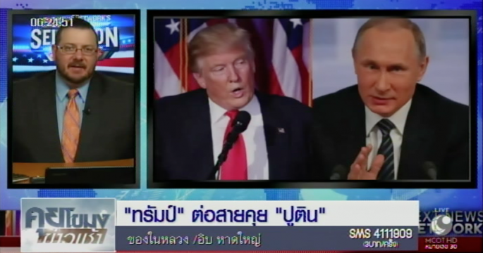ว่าที่ประธานาธิบดีสหรัฐกับผู้นำรัสเซียยกหูโทรศัพท์คุยกันแล้ว โดยผู้นำรัสเซียแสดงความยินดีในชัยชนะ และพร้อมเปิดการเจรจาในสถานภาพที่เท่าเทียมกัน