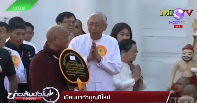 ประธานาธิบดีถิ่น จอ ของเมียนมา เข้าร่วมพิธีทางศาสนา เพื่อเฉลิมฉลองเนื่องในวันนี้ขึ้นปีใหม่