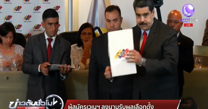 ผู้สมัครชิงเก้าอี้ประธานาธิบดีเวเนซุเอลา ร่วมลงนามข้อตกลงยอมรับผลการเลือกตั้ง ขณะที่หลายฝ่ายตำหนิรัฐบาลเวเนซุเอลาจัดการเลือกตั้งไม่เป็นธรรม