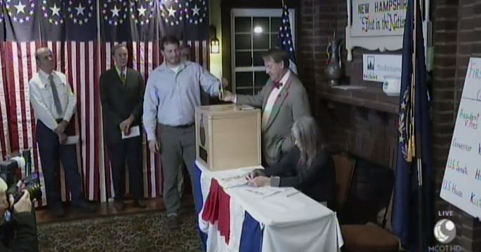 ผู้คนในหลายเมืองของรัฐนิวแฮมป์เชอร์ พากันไปลงคะแนนเลือกตั้งประธานาธิบดีสหรัฐก่อนใคร เนื่องจากผู้มีสิทธิลงคะแนนน้อยกว่า 100 คน สามารถเปิดคูหาลงคะแนนได้