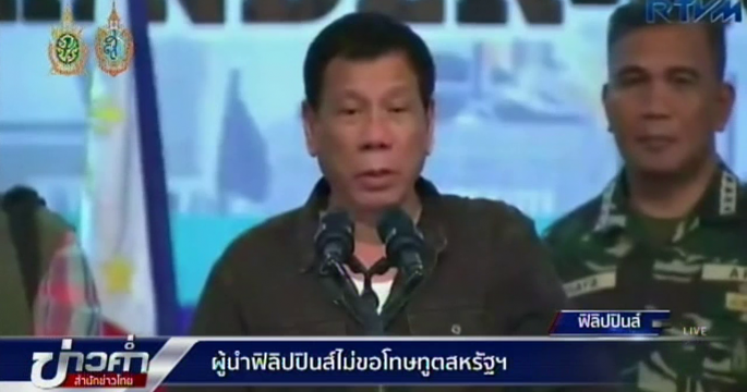 ประธานาธิบดีโรดริโก ดูเตอร์เต ไม่ยอมขอโทษ กรณีพูดจาดูหมิ่นเอกอัครราชทูตสหรัฐประจำฟิลิปปินส์ โดยยืนยันว่าทูตสหรัฐผู้นี้ ทำตัวไม่เหมาะสมที่ก้าวก่ายการเลือกตั้ง