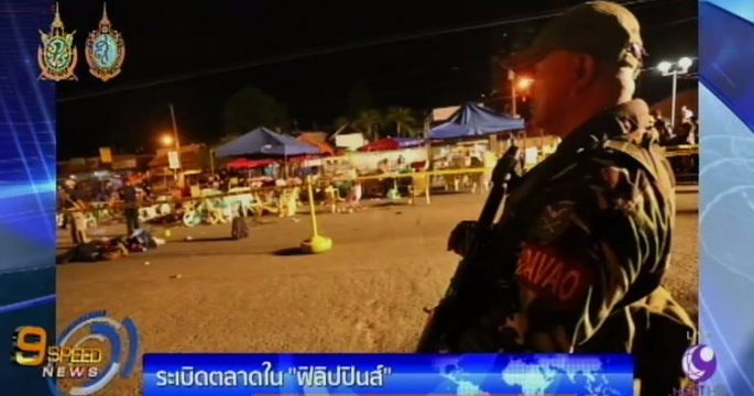 เกิดเหตุระเบิดในย่านตลาดกลางคืน กลางเมืองดาเวา ซึ่งเป็นบ้านเกิดของประธานาธิบดีโรดริโก ดูเตอร์เต ของฟิลิปปินส์ มีผู้เสียชีวิตอย่างน้อย 12 คน บาดเจ็บกว่า 30 คน