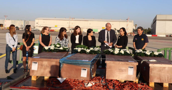 กระทรวงการต่างประเทศ ประมวลภาพพิธีการส่งร่างผู้เสียชีวิต ครั้งที่ 4 จำนวน 8 ราย เมื่อวันที่ 8 พ.ย. 66 โอกาสนี้ เอกอัครราชทูตฯ วางพวงหรีดเคารพศพ พร้อมกล่าวแสดงความเสียใจอย่างยิ่งต่อการเสียชีวิตของคนไทยทั้ง 8 ราย