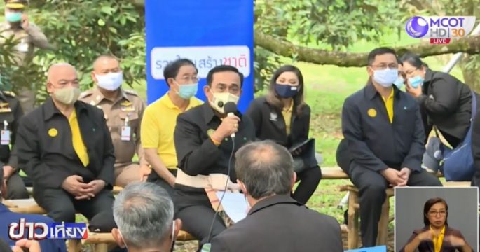 นายกฯ ตรวจเยี่ยมสวนทุเรียนภูเขาไฟ ต.ตระกาจ อ.กันทรลักษ์ จ.ศรีสะเกษ ถือเป็นการลงพื้นที่ครั้งแรกหลังเกิดการแพร่ระบาดของโรคโควิด-19 โดยได้ทดลองตัดทุเรียนจากต้นด้วย