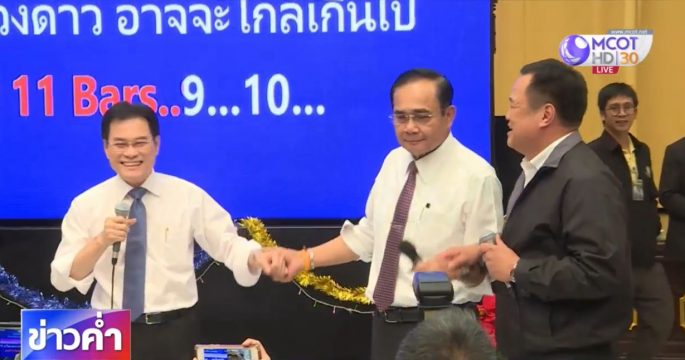 นายกฯ ไม่ตอบปรับ ครม.ดึงพรรคเศรษฐกิจใหม่ร่วมรัฐบาล เพียงแต่ยิ้มและชี้มือไปที่ห้องประชุมเท่านั้น