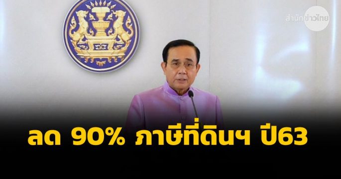 นายกฯ ระบุออก พ.ร.ฎ.ลดภาษีที่ดินและสิ่งปลูกสร้าง 90% เฉพาะปี 2563 ลดความเดือดร้อนของประชาชน