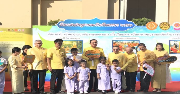 นายกฯ เชิญชวนพุทธศาสนิกชนร่วมกันรักษาศีล ลด ละ เลิกอบายมุขทุกประเภท วันเข้าพรรษา-อาสาฬหบูชา พร้อมประชาสัมพันธ์กิจกรรมวันเมตตาปัญญาอ่อน จำหน่ายดอกบานชื่นช่วยผู้พิการทางสติปัญญา