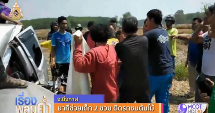 ลุ้นระทึก! เด็กน้อยวัย 2 ขวบ ประสบอุบัติเหตุรถชนต้นไม้ ตัวติดอยู่ภายในรถ เจ้าหน้าที่นำเครื่องมือช่วยกันดึงตัวเด็กออกมาปลอดภัย