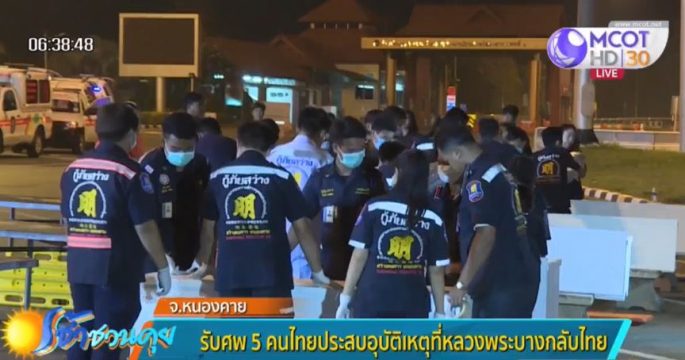 ศพครอบครัว “ศรีสวัสดิ์” คนไทยที่ประสบอุบัติเหตุเสียชีวิตระหว่างเดินทางไปท่องเที่ยวที่แขวงหลวงพระบาง สปป ลาว ญาตินำศพกลับถึงไทย ทางด่านพรมแดนสะพานมิตรภาพไทยลาวแห่งที่ 1 อ.เมืองหนองคาย คาดถึงสมุทรปราการแล้วเช้านี้