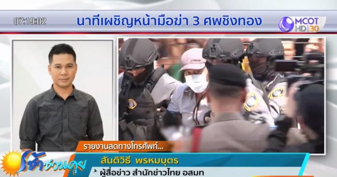 “สันติวิธี พรหมบุตร” ผู้สื่อข่าวสำนักข่าวไทย เล่านาทีเผชิญหน้ากับนายประสิทธิชัย เขาแก้ว (ผอ.กอล์ฟ) ผู้ต้องหาชิงทอง ในห้องน้ำหลังตึกตำรวจท่องเที่ยวลพบุรี ขณะยืนปัสสาวะ