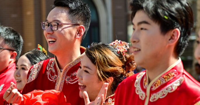 สหพันธ์สตรีแห่งประเทศจีนเผยวันพุธว่า คู่บ่าวสาวจำนวน 5,000 คู่ ซึ่งรวมถึงคู่บ่าวสาวจากฮ่องกง มาเก๊า และไต้หวัน จะเข้าร่วมพิธีแต่งงานหมู่ในวันนี้