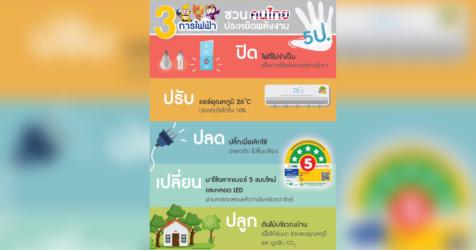 3 การไฟฟ้า ชวนคนไทยประหยัดพลังงาน