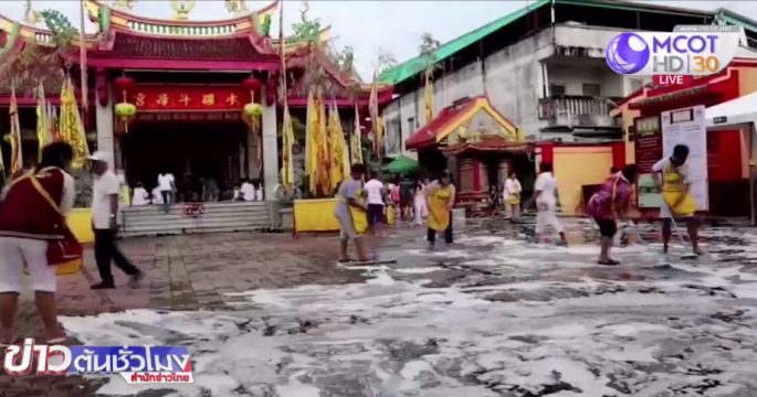 เมืองภูเก็ตคึกคัก ชาวไทยเชื้อสายจีนช่วยกันล้างทำความสะอาดศาลเจ้า เครื่องใช้ และอุปกรณ์ทำอาหารเจ ขณะที่ถนนหลายสายประดับประดาธงเหลืองและโคมไฟอย่างสวยงาม เตรียมพร้อมรับประเพณีถือศีลกินผัก ระหว่างวันที่ 9-17 ต.ค.นี้