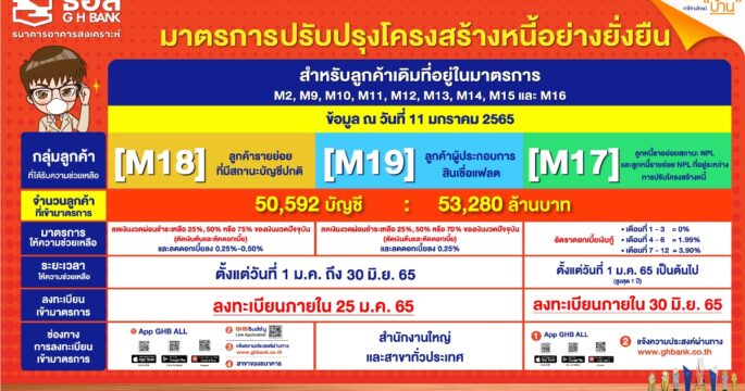 กรุงเทพฯ 14 ม.ค.-ลูกค้าธนาคารอาคารสงเคราะห์ที่ได้รับผลกระทบจากสถานการณ์โควิด-19 ลงทะเบียนเข้าร่วมมาตรการปรับปรุงโครงสร้างหนี้อย่างยั่งยืนจนถึงวันที่ 11 มกราคมที่ผ่านมาแล้วกว่า 53,280 ล้านบาท รายงานข่าวจากธนาคารอาคารสงเคราะห์(ธอส.) เปิดเผยว่า หลังเปิดให้ลูกค้าเดิมที่ยังอยู่ระหว่างการใช้มาตรการความช่วยเหลือผู้ที่ได้รับผลกระทบด้านรายได้จาก COVID-19 หากความสามารถในการผ่อนชำระหนี้ยังไม่เป็นปกติและ จำเป็นต้องลดค่าใช้จ่ายในระยะยาวด้วยการปรับปรุงโครงสร้างหนี้ สามารถลงทะเบียนแจ้งความประสงค์เข้าร่วม “มาตรการปรับปรุงโครงสร้างหนี้อย่างยั่งยืน” ตั้งแต่วันที่ 24 ธันวาคม 2564 ล่าสุด ณ วันที่ 11 มกราคม 2565 มีลูกค้าลงทะเบียนแจ้งความประสงค์แล้วจำนวน 50,592 บัญชี เงินต้นคงเหลือ 53,280 ล้านบาท ทั้งนี้ ธอส.ยังเปิดให้ลูกค้าลงทะเบียนแจ้งความประสงค์เข้าร่วมมาตรการที่ 18 [M18]สำหรับลูกค้ารายย่อยที่มีสถานะบัญชีปกติ และมาตรการที่ 19 [M19] สำหรับลูกค้าผู้ประกอบการสินเชื่อแฟลต ถึงวันที่ 25 มกราคม 2565 ขณะที่มาตรการที่ 17[M17] สำหรับลูกค้ารายย่อยสถานะ NPL และลูกค้า NPL ที่อยู่ระหว่างการปรับโครงสร้างหนี้ สามารถลงทะเบียนแจ้งความประสงค์ได้ถึงวันที่ 30 มิถุนายน 2565 […]