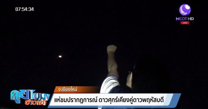 ชาวเชียงใหม่ตื่นตา มองเห็นวัตถุคล้ายดวงดาวเคลื่อนตัวอย่างรวดเร็ว จากทางทิศตะวันตกไปทางทิศตะวันออกเฉียงใต้ นานประมาณ 1 นาที ก่อนจะหายไป ระหว่างดูปรากฏการณ์ดาวศุกร์เคียงดาวพฤหัสบดี โดยต้องรอคำอธิบายจากผู้เชี่ยวชาญอีกครั้ง