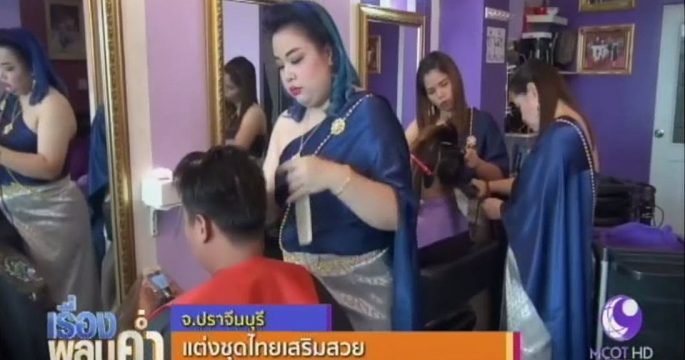 ร้านเสริมสวยเมืองปราจีนบุรีไอเดียกระฉูด ใส่ชุดไทยทำผมให้ลูกค้า แถมช่วงนี้จัดโปรพิเศษลด 50% แถมมีของชำร่วยติดไม้ติดมือฝากกลับบ้าน สำหรับลูกค้าที่ใส่ชุดไทย