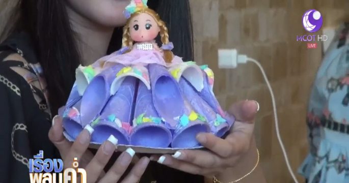 ไปชมไอเดียเก๋ๆ ของนักประดิษฐ์ใน จ.ปราจีนบุรี ที่ใช้โคนไอศกรีมหลากสีสันมาประดิษฐ์เป็นกระทงใส่ตุ๊กตาบาร์บี้สวยงาม สร้างรายได้วันละหลายพันบาท