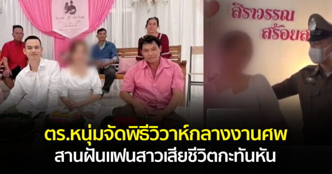 สุขเคล้าน้ำตา ตำรวจหนุ่มจัดพิธีวิวาห์กลางงานศพ สานฝันแฟนสาวที่เสียชีวิตกะทันหัน ท่ามกลางญาติและเพื่อนร่วมงานจำนวนมาก
